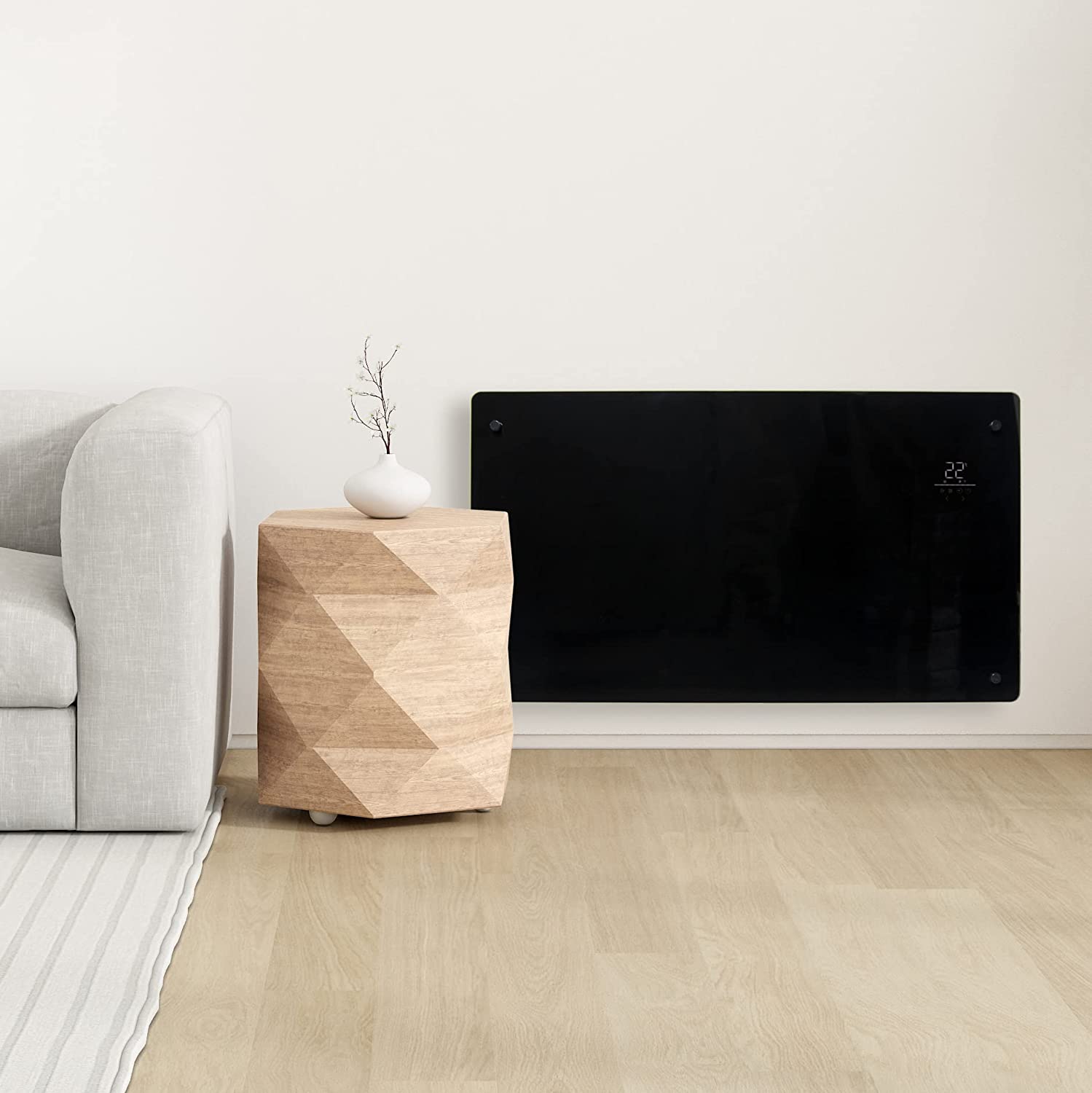 Lightweight and slimline, Moda electric heaters provide robust warmth housed in a discreet package. Their elegant builds employ a soft, minimalist aesthetic to blend seamlessly with existing design schemes and deliver warmth to rooms without distraction. The touchscreen control panel located on the top right corner can be dimmed when not in use, to create a completely uniform look.